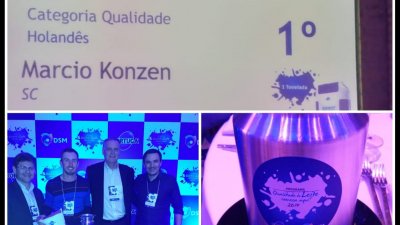 O cooperado Márcio Konzen, de São João do Oeste foi campeão nacional no programa Qualidade do Leite Começa Aqui, categoria Qualidade Holandês da DSM| Tortuga. A premiação aconteceu na terça-feira (3), em São Paulo. A Cooper A1 compartilha a honra em ter um quadro social preocupado e responsável com a produção!