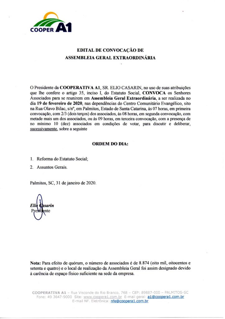 Razão Social: Cooperativa A1 | CNPJ/MF: 03.470.626/0001-50