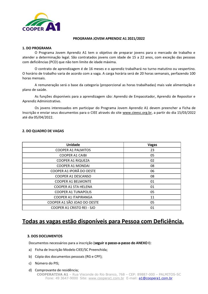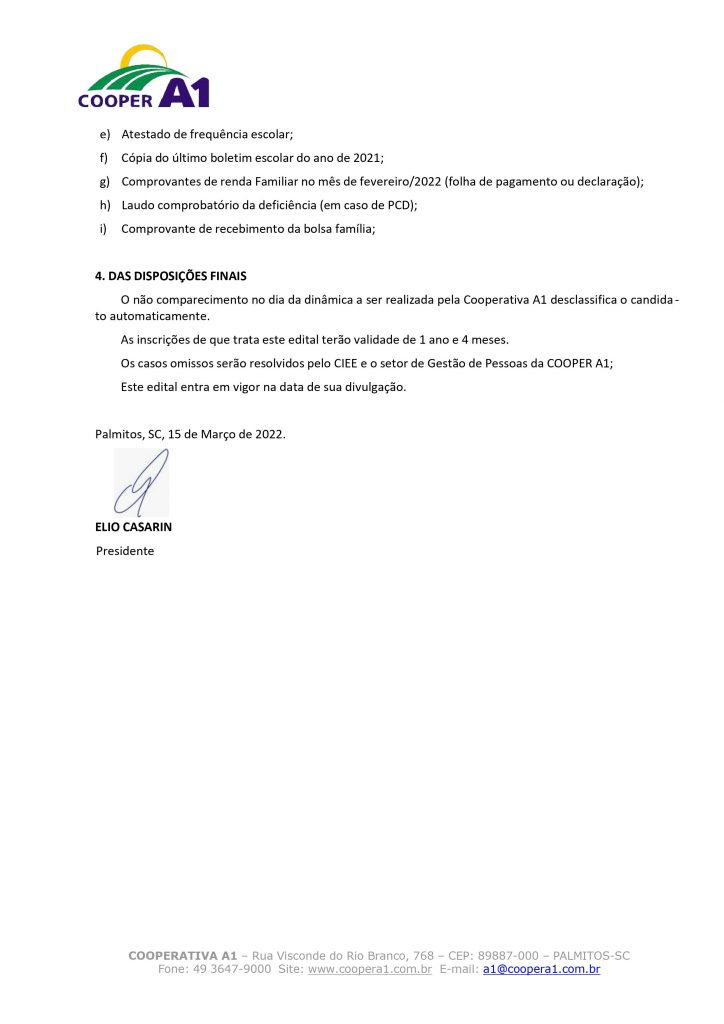 Razão Social: Cooperativa A1 | CNPJ/MF: 03.470.626/0001-50