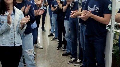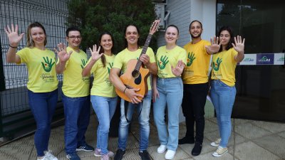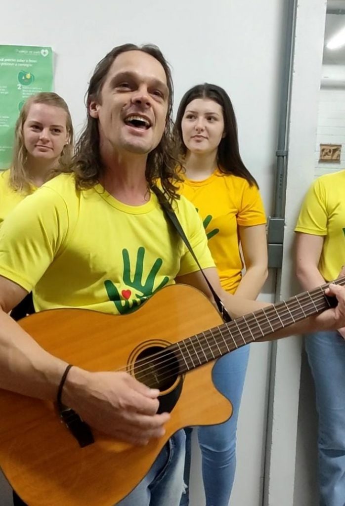 O grupo de voluntários da Cooper A1 desenvolveu, nesta sexta-feira, dia 29, uma atividade especial voltada aos colaboradores da cooperativa. O grupo passou por todos os setores da matriz e unidade, para homenagear os profissionais pelo Dia do Trabalho, que será comemorado domingo, 1º de maio. A ação envolveu a participação do artista Juliano Signori, que interpretou com voz e violão a música ‘Daqui só leva o amor’.