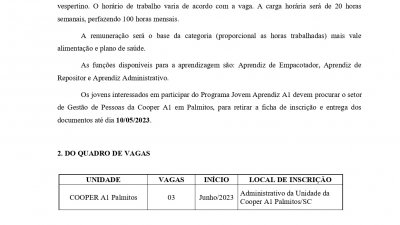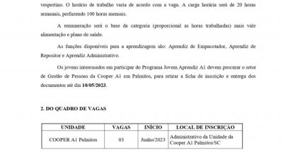 EDITAL JOVEM APRENDIZ PALMITOS/SC