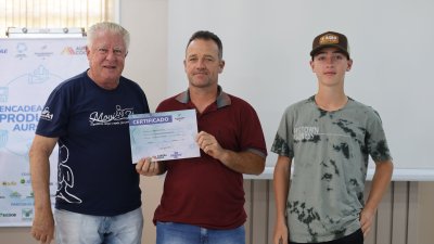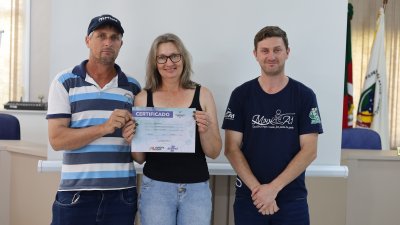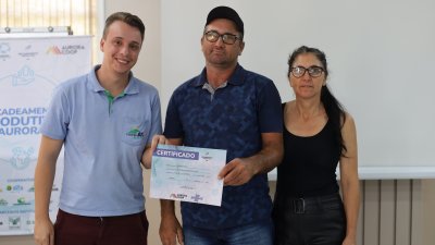 Nesta sexta-feira (22) em Planalto (RS), 14 famílias concluíram o programa “QT Rural”, oferecido pela Cooper A1 e Aurora Coop. A formação ocorreu na câmara de vereadores do município, e contou com a presença do coordenador do Encadeamento Produtivo da Aurora Coop, Joel José Pinto; o Gerente da Unidade Maicon Rigon; o coordenador dos programas de qualidade na Cooper A1, Carlos Gadonski, e o instrutor do Sebrae, Jovani Becker, que auxiliou as famílias.